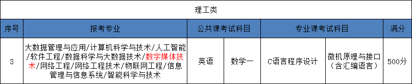 2025年河北省全日制统招专升本网络工程技术专业的考试科目为:公共课为:英语和数学一;专业课考试科目为:C语言程序设计和微机原理与接口(含汇编语言)。河北专升本网络工程技术专业满分为:500分。