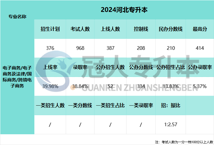 2025年河北省专升本考试将与2025年4月19日进行,河北专升本考试电子商务及法律专业招报比还没有公布,参加2025年河北专升本考试的考生可以参考下表中2024年电子商务及法律专业招报比。