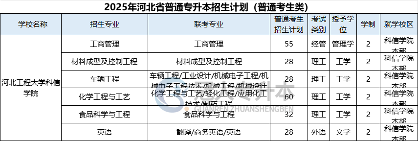 以上信息是“2025年河北省专升本河北工程大学科信学院招生计划”的相关介绍。河北省专升本考生可以将我们加入到收藏夹,我们会持续更新河北省普通专升本考试方面的相关资讯,政策,各院校招生计划,分数线,录取率等信息。