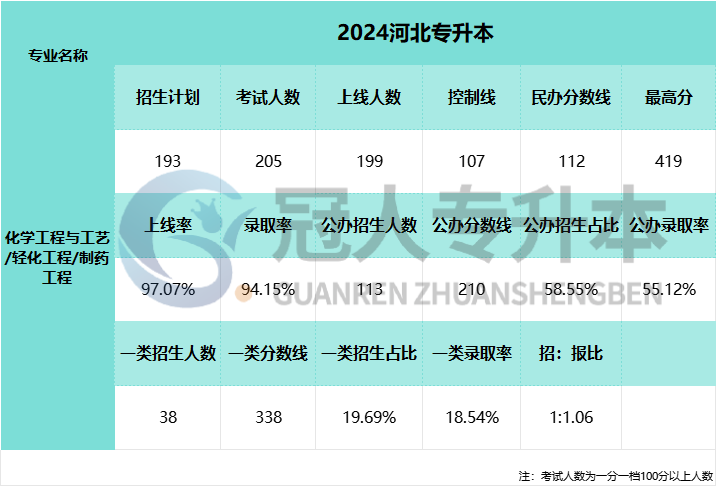 2025年河北省专升本考试将与2025年4月19日进行,河北专升本考试制药工程专业上线人数还没有公布,参加2025年河北专升本考试的考生可以参考下表中2024年制药工程专业上线人数。